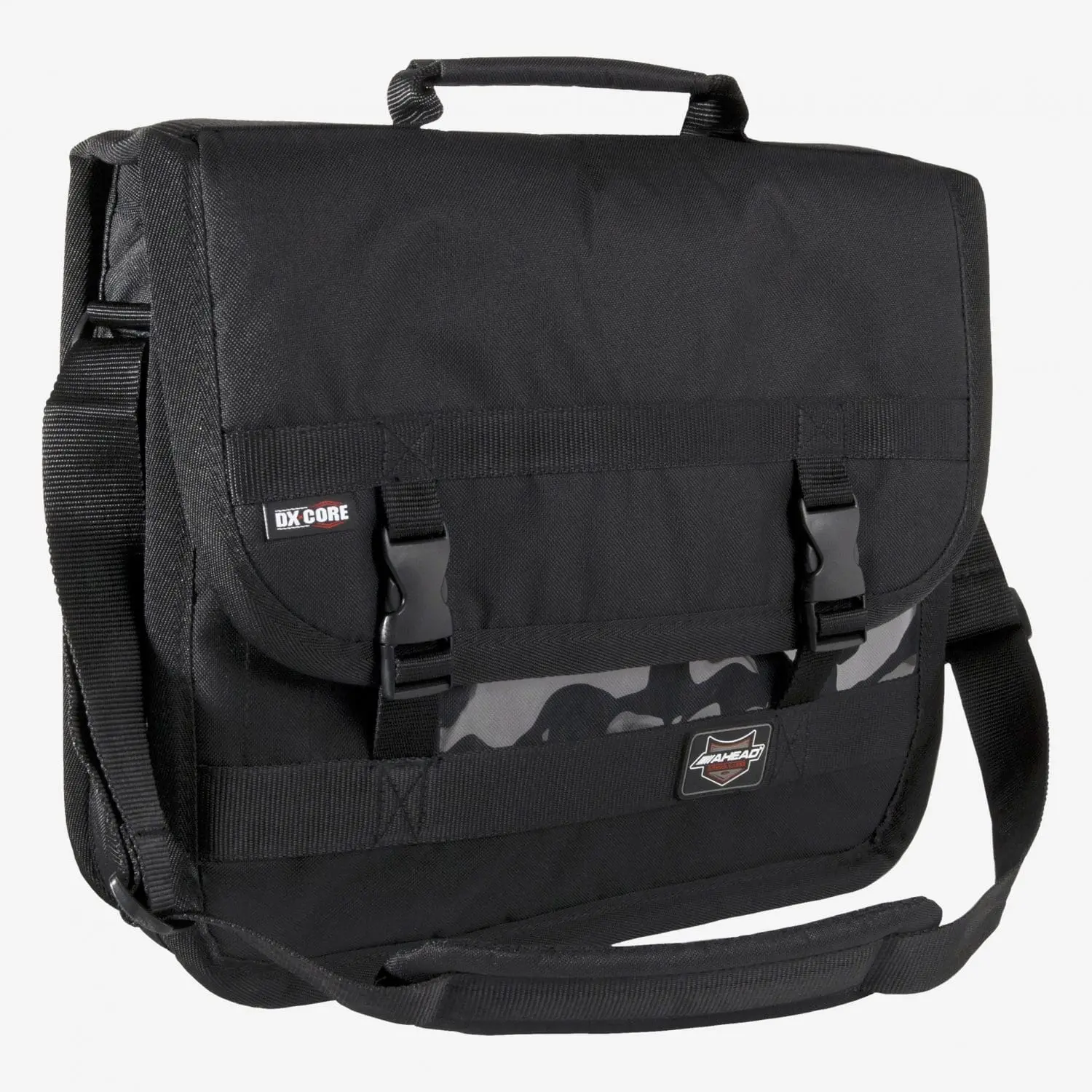Padded carry handle, shoulder strap, and quick-release buckles.