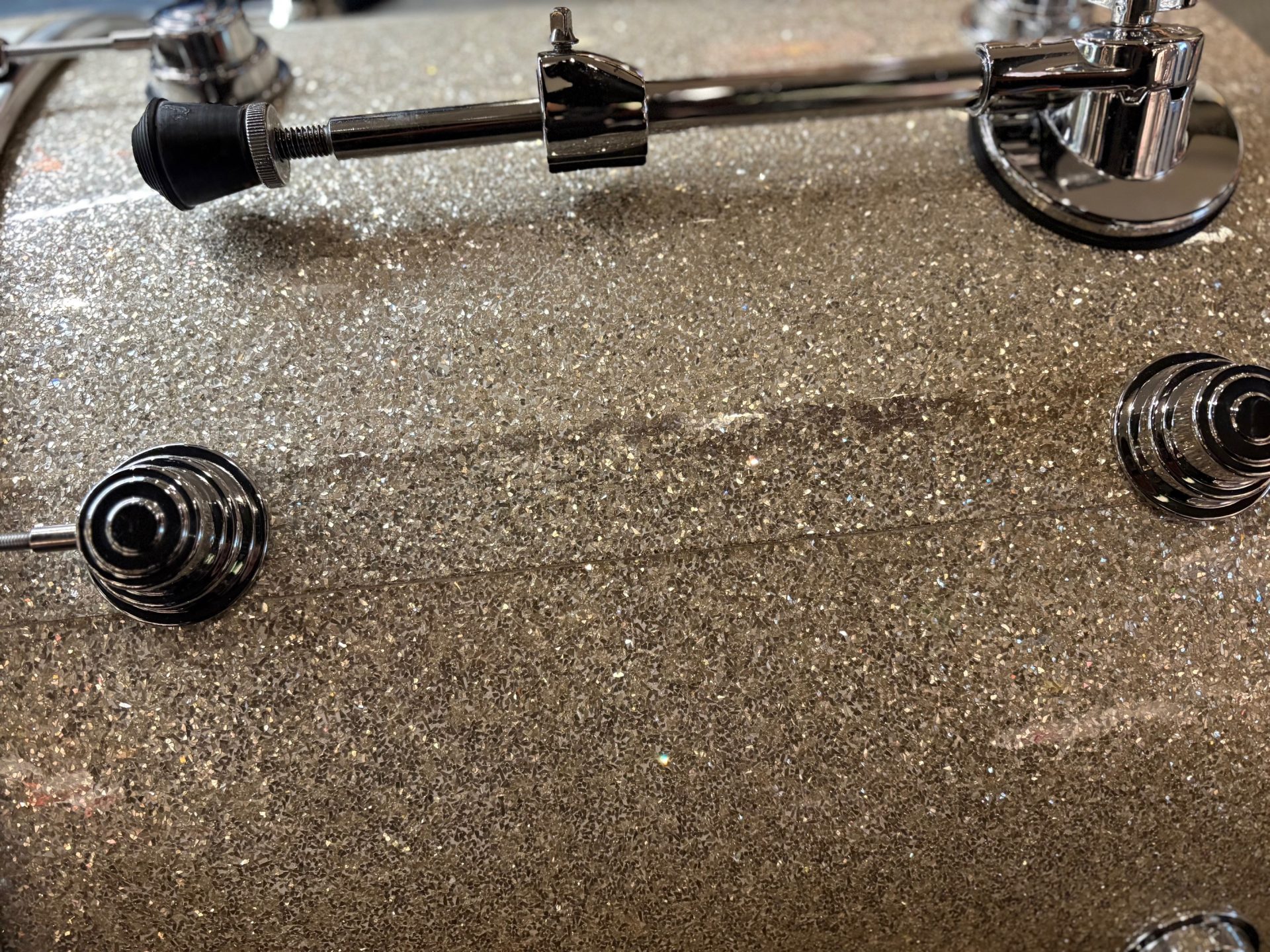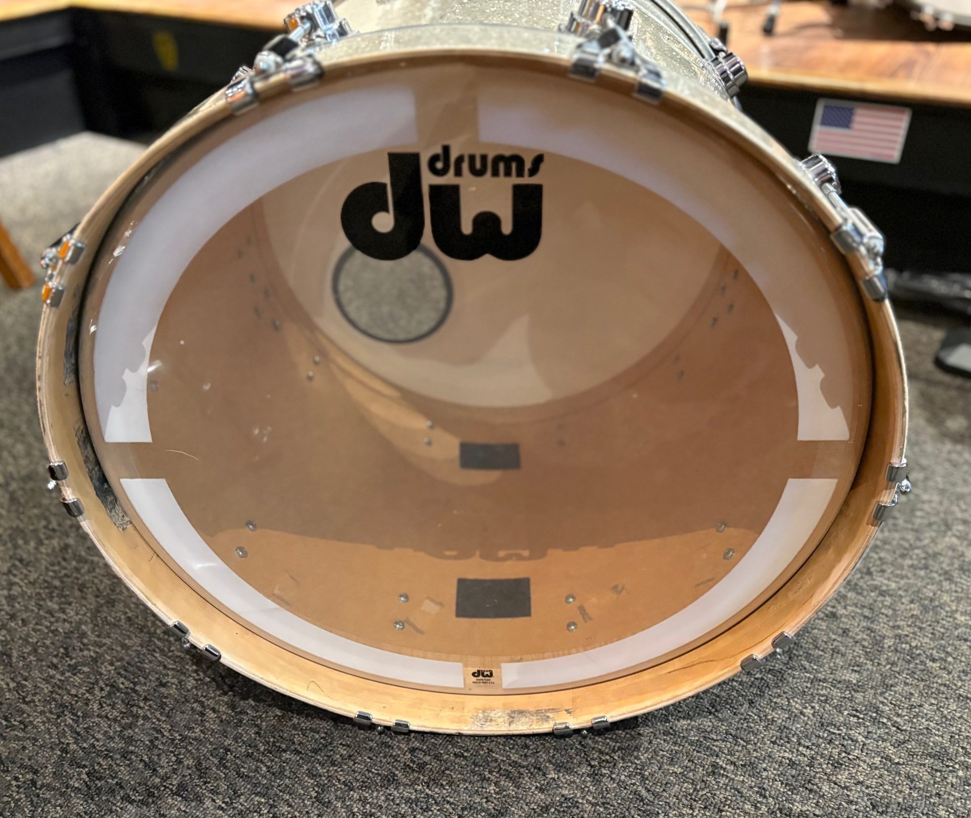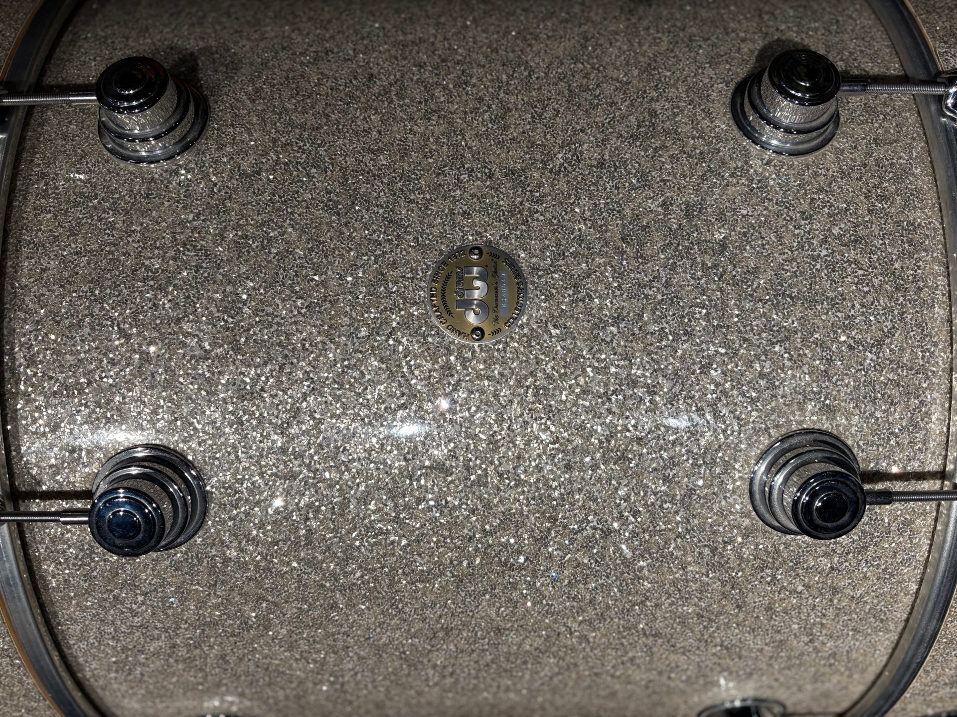 NOTE: DW has had a few iterations of Broken Glass wrap over the years. The hue on this 2008 drum is one of the lighter ones. See the pic with a darker version tom from 2010 for comparison.