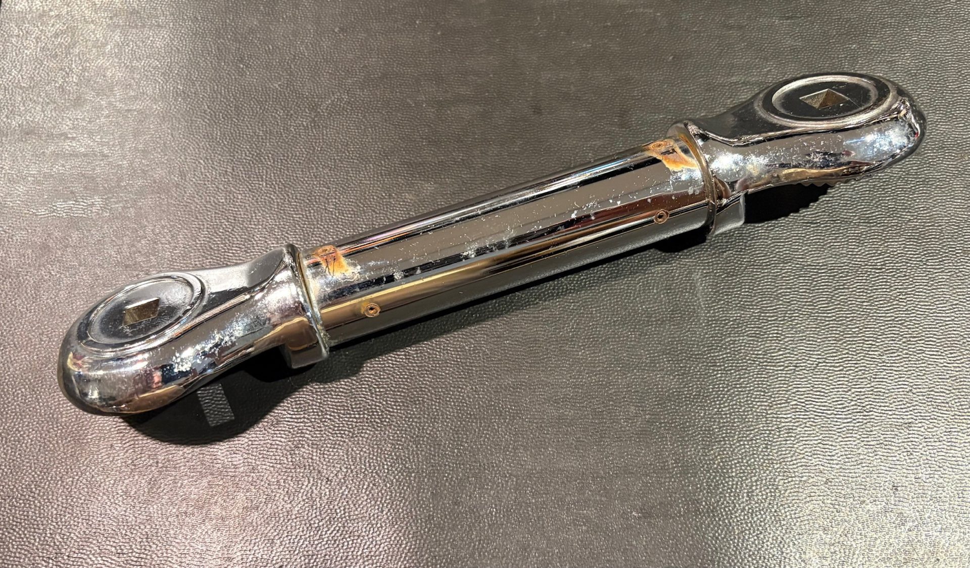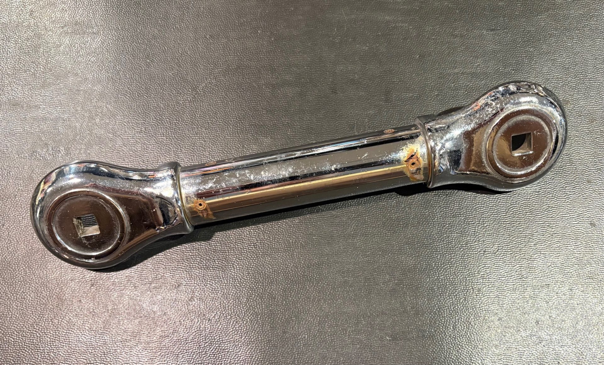 It’s a 1 in. diameter 4 in. steel tube with geared ratchet halves at the end. Overall length is 9 1/8 in.