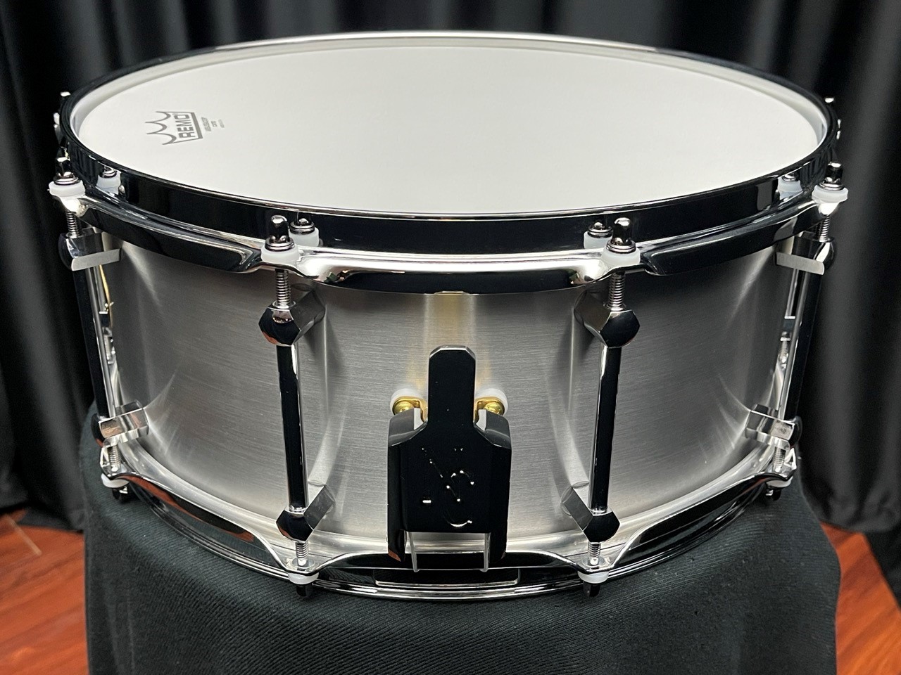 Raw Finish with protective coating. 10 Chrome Tube Lugs. Triple Flanged Chrome Hoops. Drop style N&C throw-off.