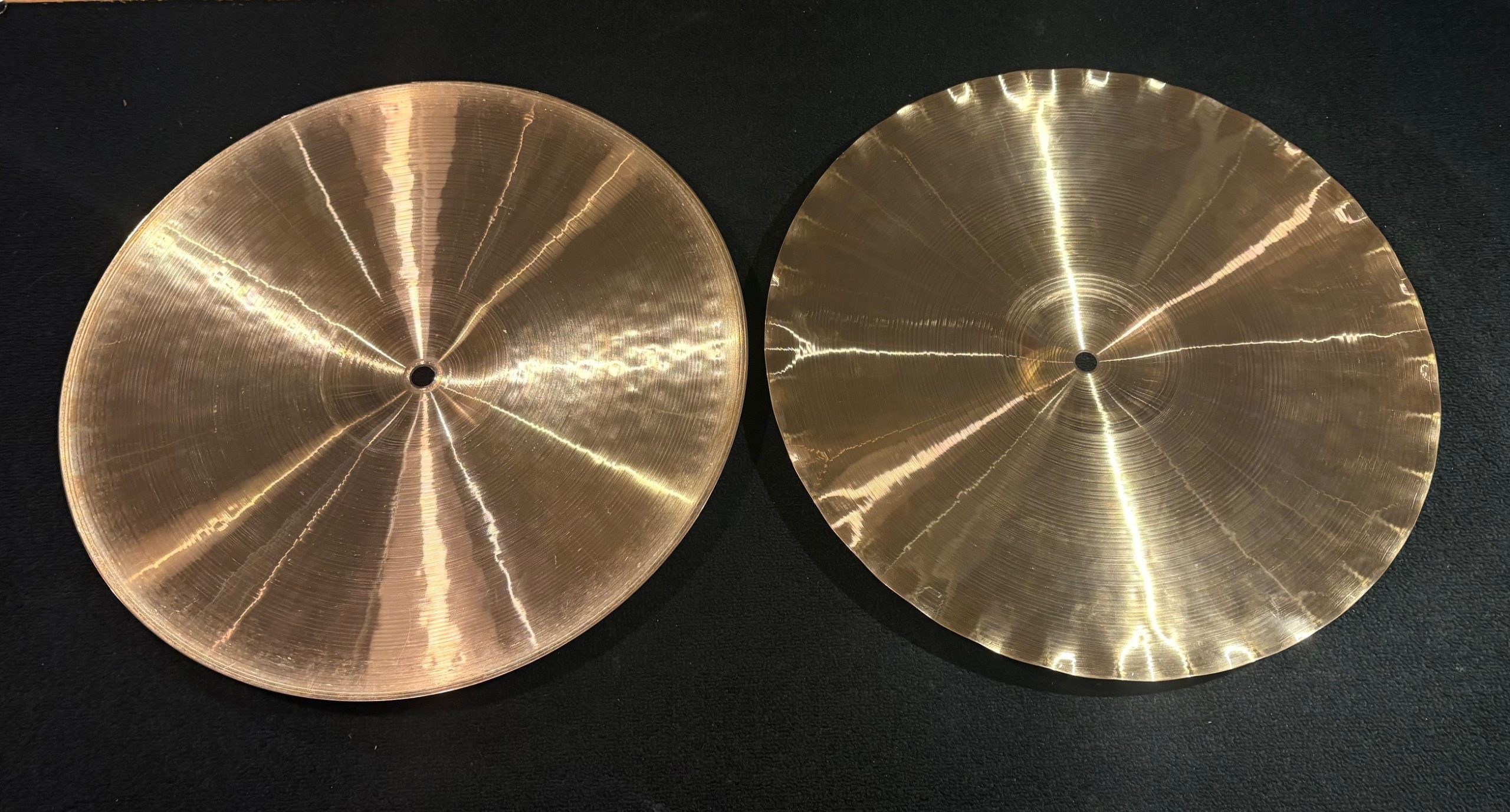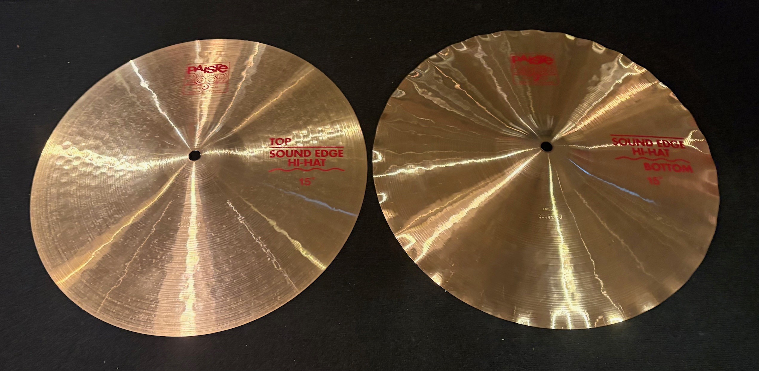 These cymbal are in very good condition with no dings, cracks, or keyholes. There are some minor scratches. Top hat has a lot of stick marks. See photo’s.