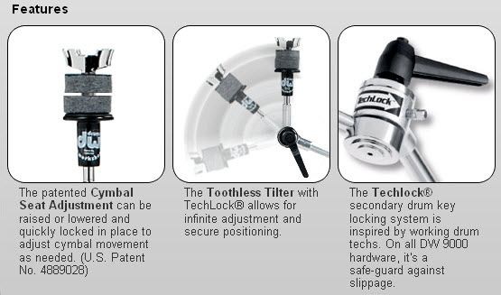 Drummer-friendly features like toothless tilter with Techlock, adjustable cymbal seat, integrated memory locks and heavy-gauge tubing make these stands road worthy and reliable beyond compare.