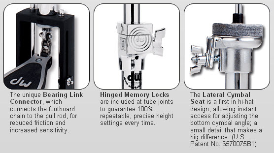 Heavy-duty 5500D Delta Hi Hat in a 3-leg model is sturdy and well designed, with a spring-release footboard, which allows the footboard to fold up while removing tension from the springs.
