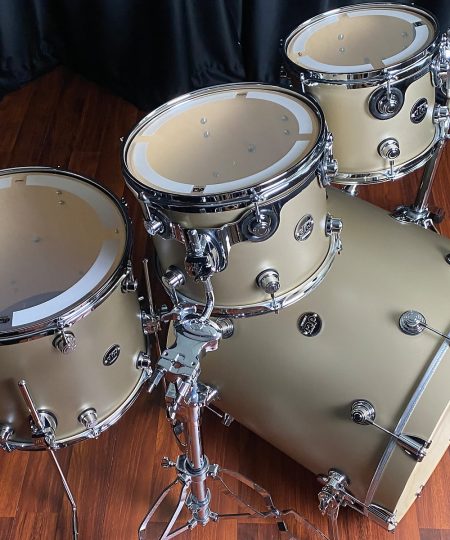 This is a shop display DW Performance Series 4 piece maple set in Gold Mist Lacquer.