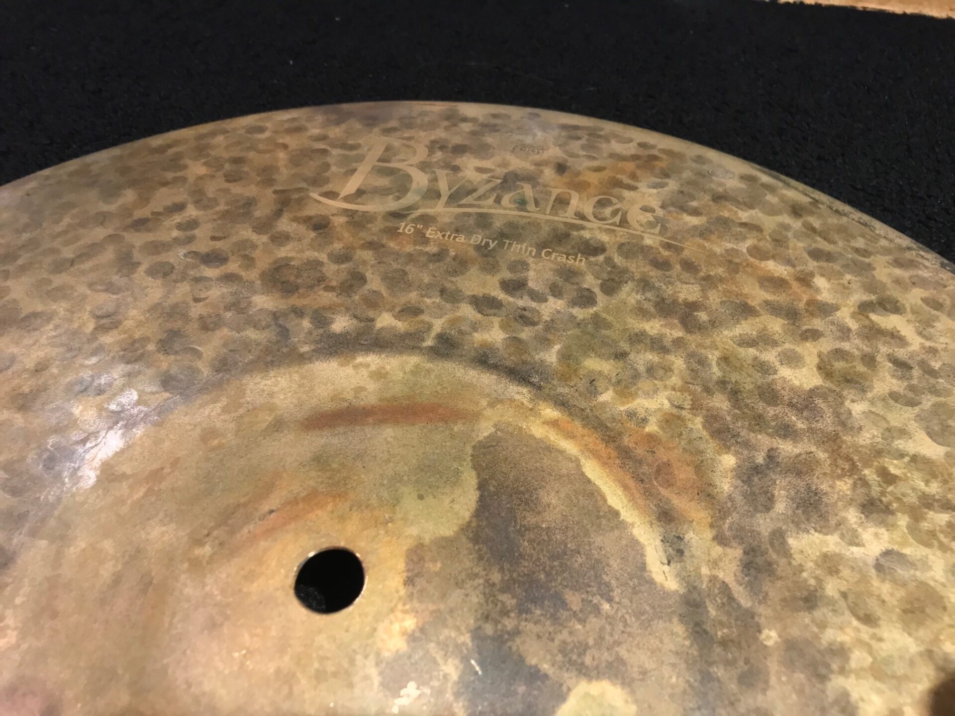 This 16in. crash cymbal weighs 987 grams. It’s dark and dry.