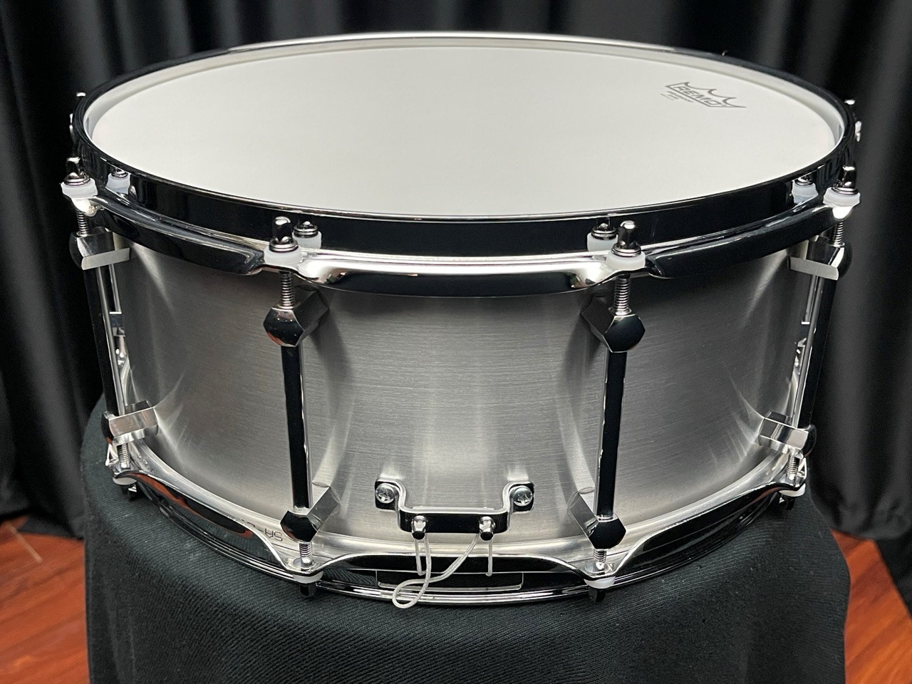 Raw Finish with protective coating. 10 Chrome Tube Lugs. Triple Flanged Chrome Hoops. Drop style N&C throw-off.