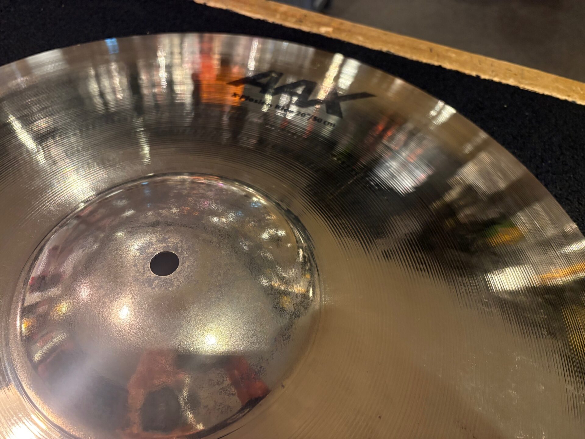 This cymbal has no dings, cracks or keyhole. Just some fingerprints and stick marks. Logo’s are slightly faded – see pix.