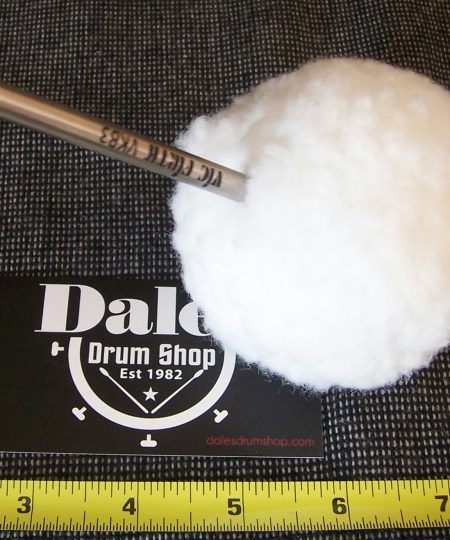 Beater head is 3in. diameter soft fleece with a hard inner core.