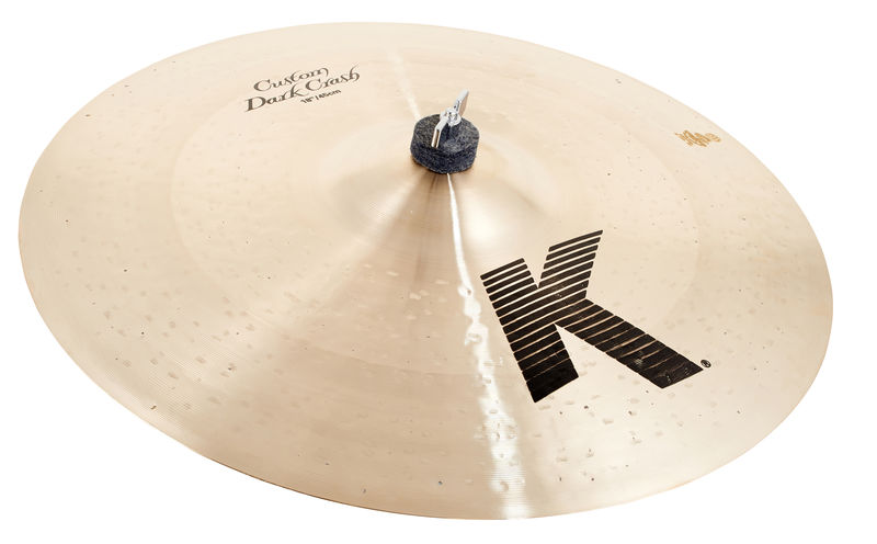K Custom Dark cymbals are known for their warm, rich sound that cuts through and sings out. Overhammering on top of the cymbal provides slightly dry, trashy overtones.